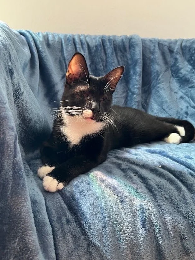 Hello from Harold! This boy is a 6 month old kitten from our partners Pets With Wings in St. Thomas. He has some slight corneal scarring on one eye but does have vision from that eye. He’s ready to romp and play in his very own home!